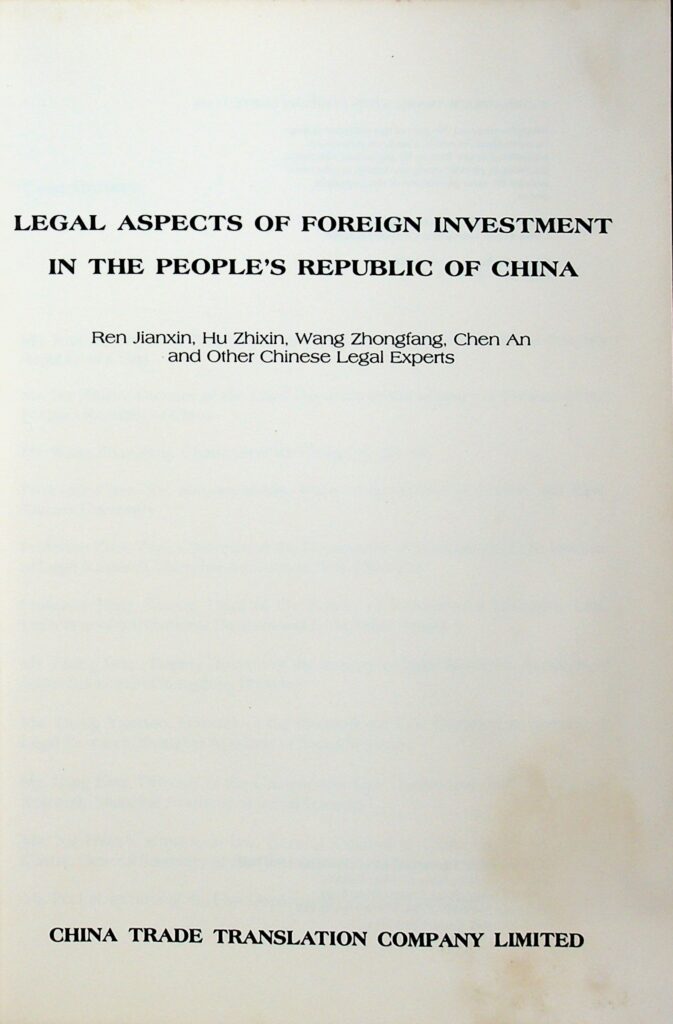 《中华人民共和国外国投资的法律问题》 Legal Aspects of Foreign Investment in the People's Republic of China