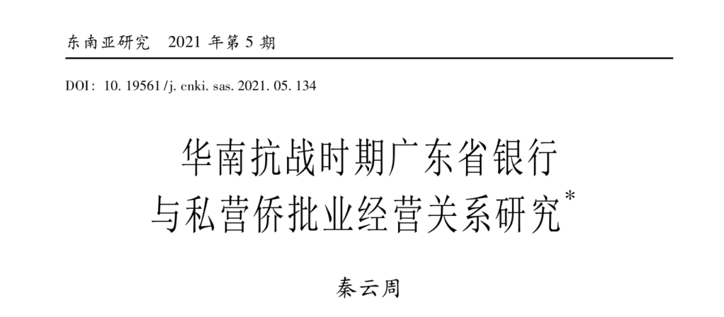 华南抗战时期广东省银行与私营侨批业经营关系研究