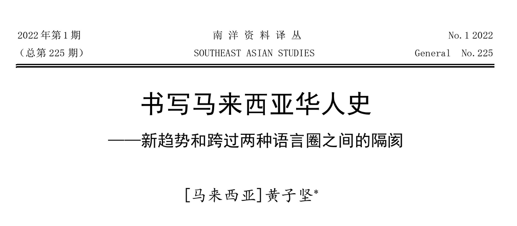 书写马来西亚华人史——新趋势和跨过两种语言圈之间的隔阂