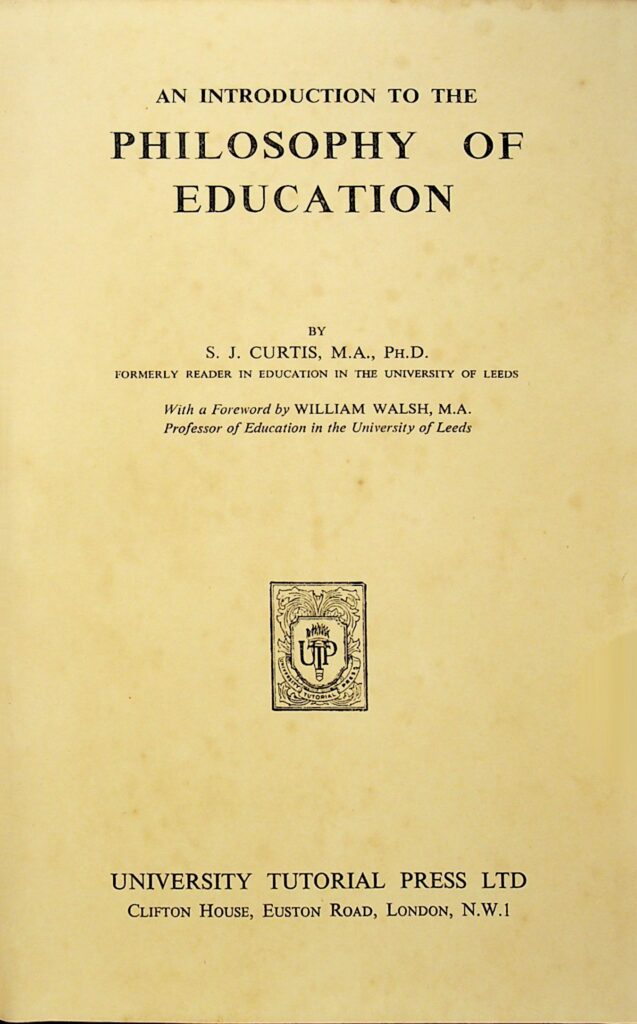S. J. 柯蒂斯博士(Dr. S. J. Curtis)的《教育哲学导论》(AN INTRODUCTION TO THE PHILOSOPHY OF EDUCATION)一书,是一部旨在向缺乏哲学训练的教育学学生清晰、透彻地介绍教育哲学思想的入门著作。本书由利兹大学教育学教授威廉·沃尔什(William Walsh)作序,他赞扬柯蒂斯博士的工作以严谨的学术性和对学生困惑的深刻理解为标志。