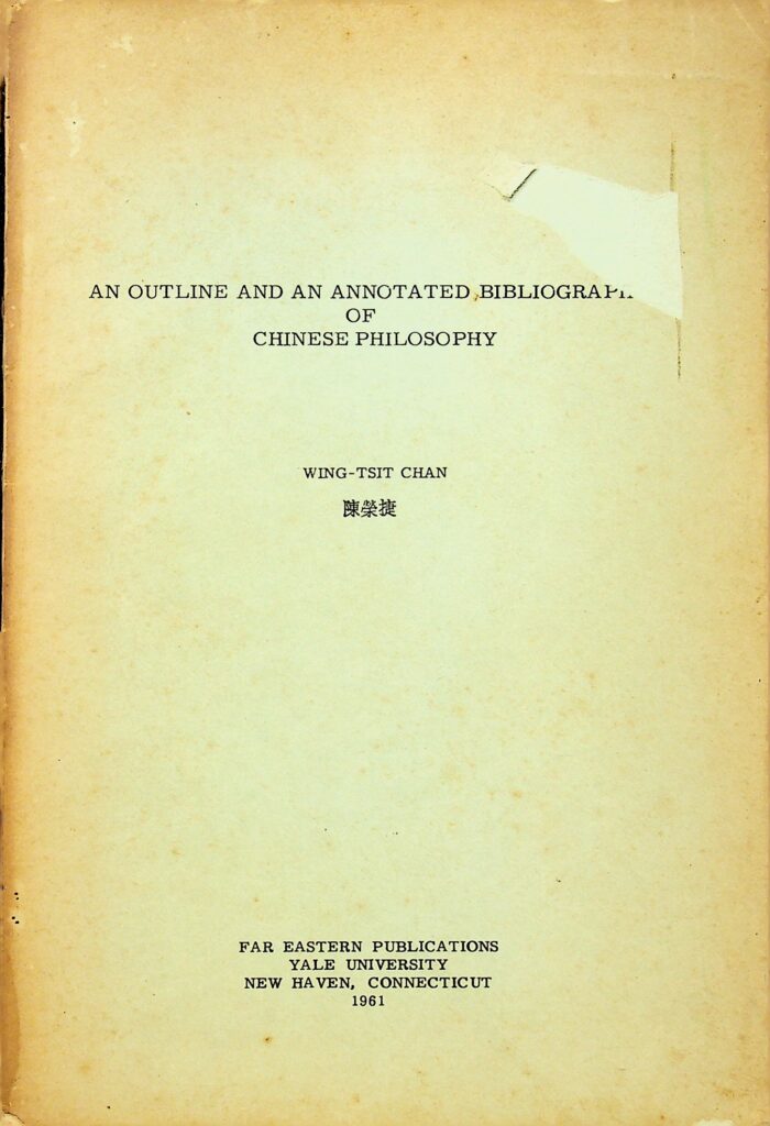 这部由陈荣捷(Wing-tsit Chan)教授编著的著作,名为《AN OUTLINE AND AN ANNOTATED BIBLIOGRAPHY OF CHINESE PHILOSOPHY》(《中国哲学纲要与注释书目》),于1961年由耶鲁大学远东出版社出版。